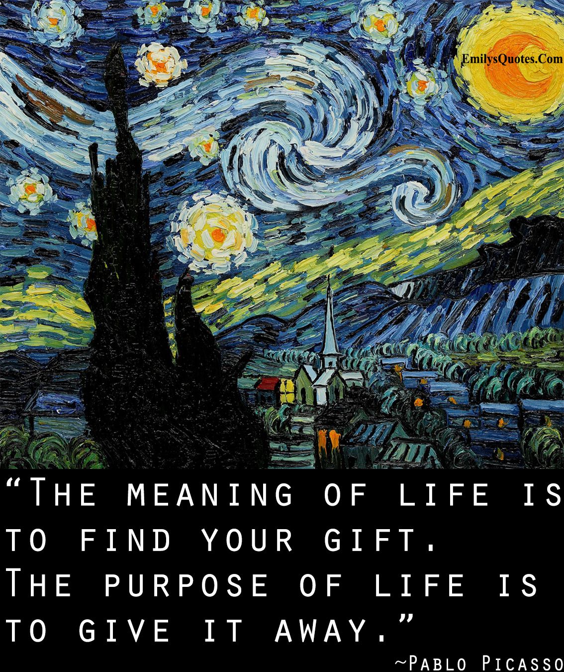 Geekilicious Art The Meaning Of Life Is To Find Your Gift Pablo Picasso Quote Inspirational Literature Art Print 16x20 White Black 3999 FREE Shipping Only 6 left. Ad by ArtsyWallsAndMoreAd from shop. Pablo Picasso quote decal The meaning of life is to find your gift the purpose of life is to give it away decal inspirational decal.